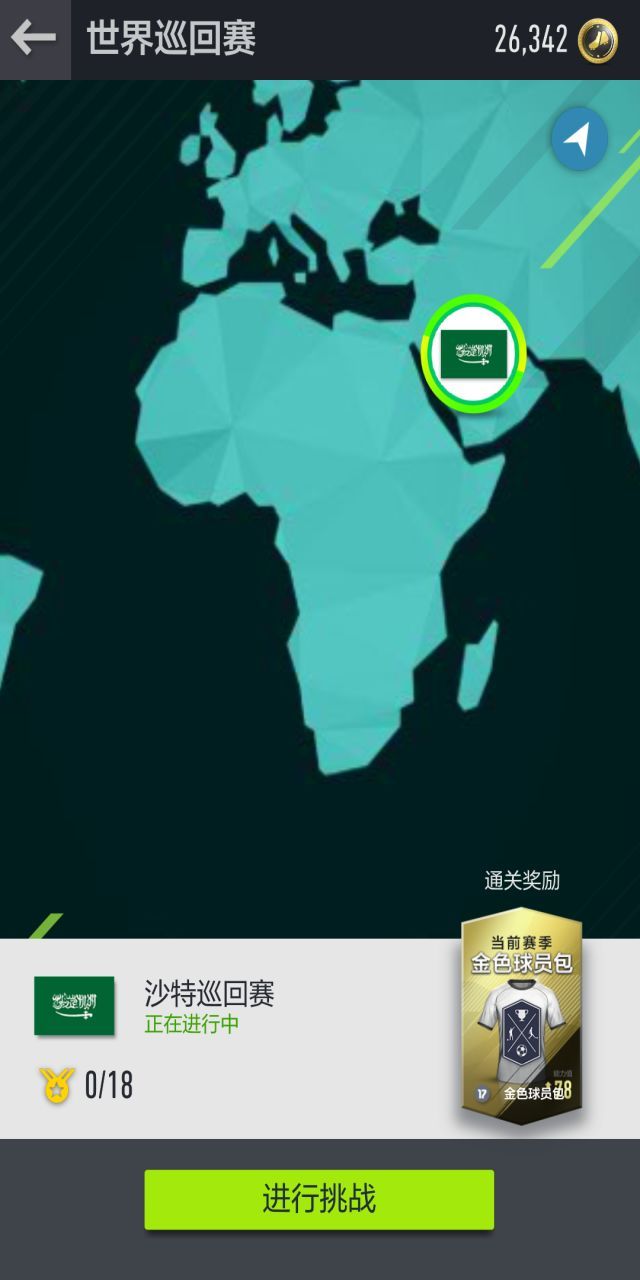 目前内测的版本尚未开放类似fifa online3 M的排位赛,只能联赛性质的世界巡回赛供玩家挑战,玩家通关世界巡回赛后,将获得一张78+的金色球员包作为奖励,也是Fifa online4目前最好的球员包。而世界巡回赛的挑战次数为每天十次,基本一天可以挑战一个地区的世界巡回赛。