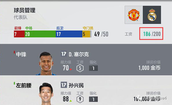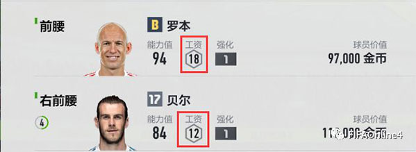 值得注意的是,球员的强化等级不会影响该名球员的工资,不同强化等级的同一球员工资相同。