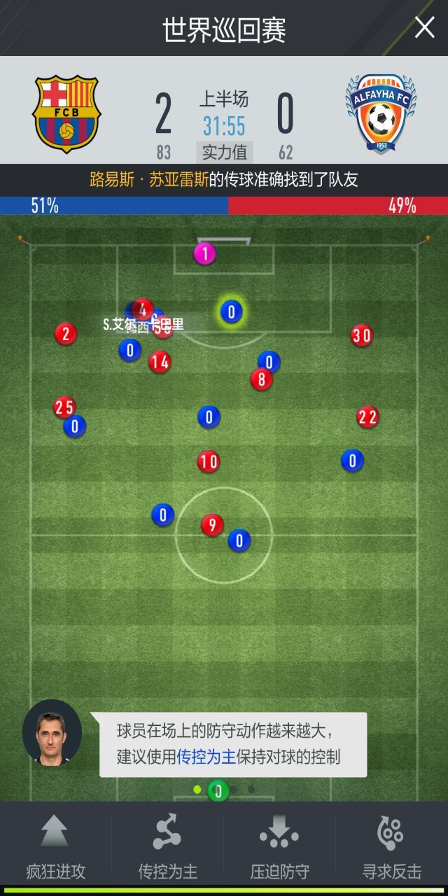 而比赛的过程界面沿用了FIFA online3 M的界面,显得过于单调,对于游戏的可玩性来说一般,只是在比赛过程中教练会根据场上情况提出相应的战术指示,给予一定的帮助,不过简单的界面和操作,还是使得游戏体验性大打折扣,显得这款手游更大的作用在于FIFA online4 的一款手机辅助工具。