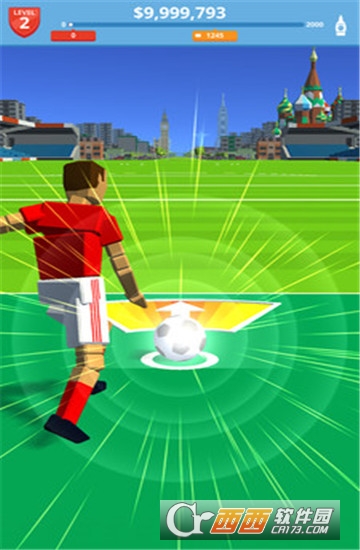 抓准踢球的最佳时机可以获得额外的力量——踢得越远,赚的金币就越多。然后升级你的力量和球的弹性,并目送足球飞跃这些令人赞叹的全球地标。