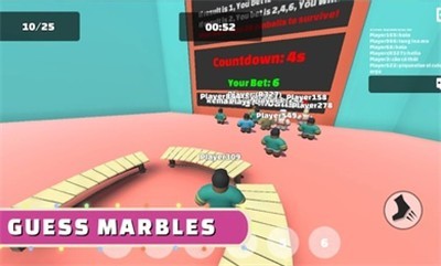 在这个赛场中经历一场全新考验,在这个赛道中前行,小心前方的危险,每场游戏都一定要小心应对,不能被淘汰了,一旦玩家挑战失败,就需要从头开始。游戏中支持联机模式,玩家可以与好友们一起来到这个淘汰赛中,在这个鱿鱼游戏的比赛中,感受一场令人激情澎湃的淘汰赛吧。