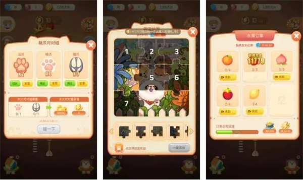 3)萌爪、拼图、水果订单奖励:萌爪和拼图需要靠互换来集齐,奖励看似不多,但奖励的体力其实间接等于大量的金币收益,性价比很高,还能在互换的过程中,认识新朋友,何乐而不为。水果订单中缺少的水果只能通过分享给好友,然后互点完成,这里在此体现出了有一两个好友的重要性了,注意订单有完成时间限制,要及时完成。PS:有一个小诀窍,萌爪和拼图的奖励可以攒到周末再领取,以此可以多完成好几轮的小区排位赛,获得排名奖励提升小区评级。