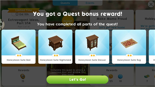 1、第一次结婚得做婚礼任务,限时做完会有一套家具奖励