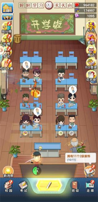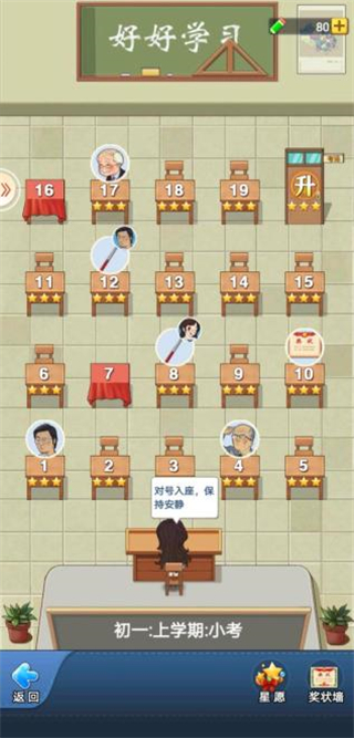游戏中还有着许许多多的学习任务等待着你来进行完成,相当地好玩,玩家在刚刚开始的时候,还可以选择不同的学习场地,将会为你带来完全不同的发展路线,十分地有趣;游戏还很多的玩法等你前来体验,不断解谜享受养成的乐趣,解锁学校中的各个副本和玩法,让你回到当初在学校的感觉,思维敏捷不断闯关,老少皆宜,全民玩家都能玩,经营好你的学校,让每一个学生成为学霸,