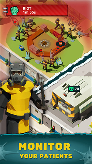 监视僵尸的状况,以防止爆发攻击。升级创建药品的实验室。保持诊所的建筑物清洁,安装优质淋浴器以改善卫生状况。该病毒严重影响了感染者的心理,他们需要娱乐才能治愈。将新电视放到病房,把长椅放到院子里,甚至买吉他在篝火旁玩音乐。这将帮助您的病人打败内在的野兽