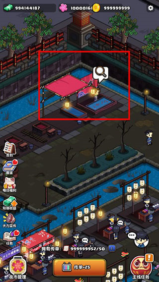 下面返回夜市,点击商品气泡,即可进入摊主和客人的交谈中,耐心等待一段时间后…客人便会消费,等客人消费完成后,会在摊位上留下支付用的金钱,点击即可拾取!