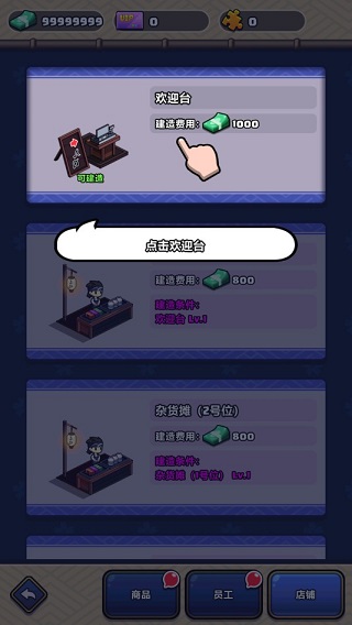 基础的建造和商品解锁了解完后,点击发传单可以获得更多客人。