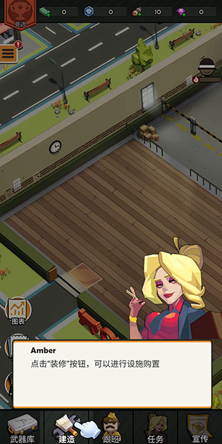 1、进入游戏之后,我们接手了一家破败的射击俱乐部,首先点击“建造”按钮,可以进行设施购置。