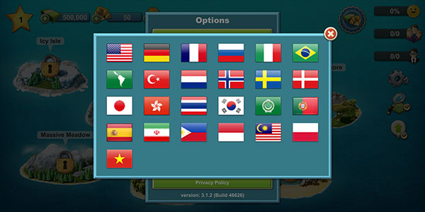 如果细心的玩家们就能看到,在我们购买建筑的时候,有一些建筑虽然已经达到解锁的等级了,但是我们依然无法购买,那是因为很多建筑并不是这座小岛上的建筑。本作为玩家们提供了六个小岛,分别是绿荫岛屿、沙漠岛屿、沼泽岛屿、雪山岛屿、丛林岛屿、戈壁岛屿,每种岛屿都有特殊的建筑,玩家们只能购买与之相同的建筑才能在该岛上进行建设。