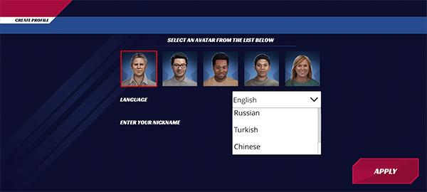 1、打开美国火车模拟器中文版,在language这里选择“chinese”,如下图所示。
