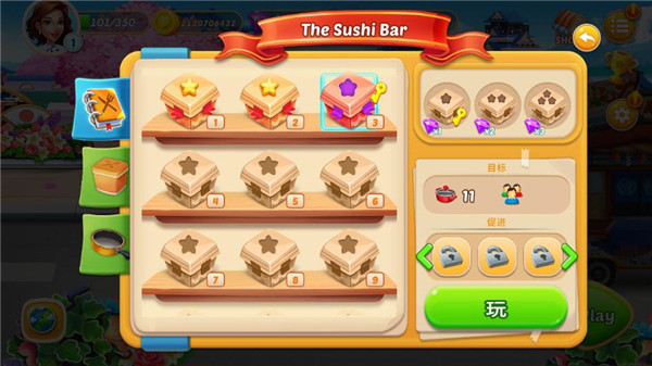 5、基本的玩法了解之后,下面才是本次的重要,由于新版本更新增加了不少内容,游戏玩家在完成关卡挑战的时候,需要收集钥匙来打开主题餐厅最后为你准备的礼包,获取钥匙的关键方法就在于是否满足关卡设定的目标,待你成功突围这些难度挑战,便可获取钥匙,并且增加一定的金币,继而为你后续的主题餐厅开启提供基本保障。
