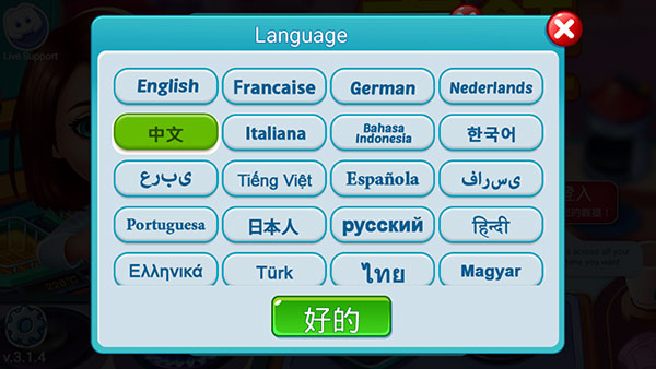 3、最后选择中文,点击好的即可设置游戏语言为简体中文。