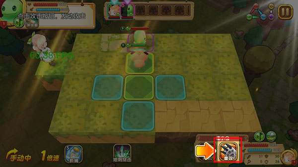 7、滑动宠物接近魔兽即可发起攻击,攻击按钮在下图的红框当中;