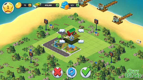 游戏在操作上采用虚拟按键控制,在屏幕上有很多的功能按键,玩家可以选择建筑民房、商业房、娱乐公园等,当然更少不了马路之类的交通道具哦。在建设的时候,玩家可以在屏幕中拖动或者旋转建筑,随意安装各种道具。对于模拟经营游戏来讲,操作并不困难,而困难的是在建设的时候对场景的控制,若是想要将自己的城市做得更好,游戏的整体控制布局可是必须要面对的。
