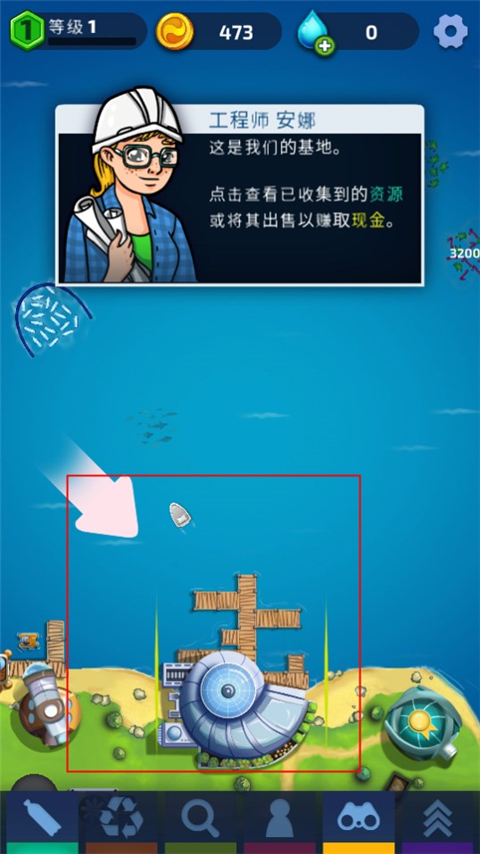 1、在本站下载安装并打开放置海洋清理师游戏,进入游戏,玩家首先需要查看岛屿中漂浮的垃圾。