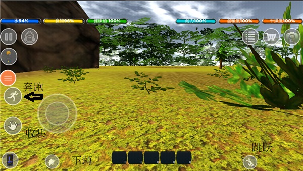 4、下方还有奔跑、下蹲、跳跃,收集操作;