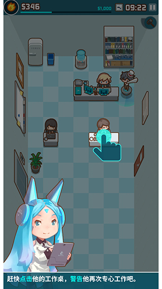 而出现这类情况时,玩家需要点击她的工作桌进行警告,好让员工专心工作。