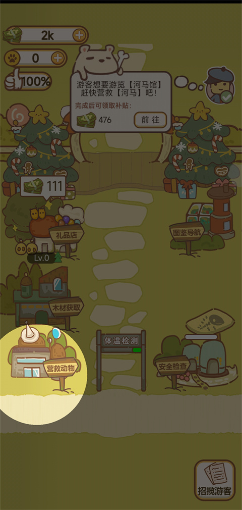 1、下载进入动物园模拟器手机版,首先我们需要去寻找和营救落魄的小动物们;