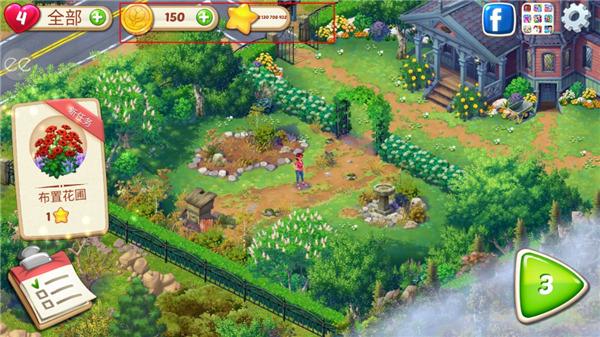 1、玩家在游戏中需要通过不断地闯关,收集各种道具,让花园恢复生机,将其打扮的更加美丽。与她英俊的邻居卢克一起种下浪漫的种子,并将她前男友布莱恩的耙子从她的地盘上移开。在数百个独特的拼图水平中匹配和收集鲜花,以获得星星并种植您的花园。