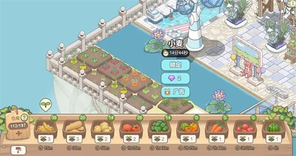 作物成熟需要一段时间,使用钻石或观看广告也可以加速成长,每日广告加速次数上限为50次,建议城主大大在加速时选择生长时间较长的作物,效率会更高。