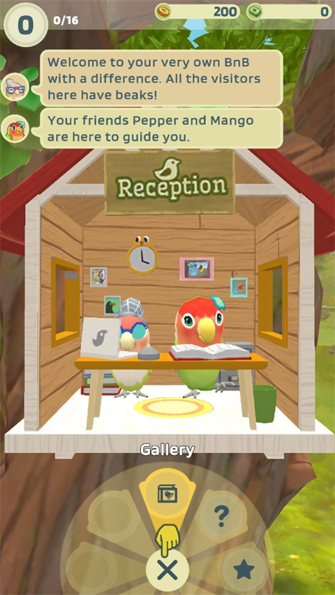 你是否曾经梦想过远离日常琐事,甚至拥有属于自己的住宿加早餐民宿?今天小编带来的这款翼彼迎官方版将会满足你的一切。这是一款十分休闲的模拟经营类手游,在这里你将结识能够指导你翼彼迎业务、富有魅力的佩珀和曼戈!帮助它们把一棵空置的老树转换成适合娇小环球旅行者的民宿,为鸟儿顾客们提供周到的服务科可是别有趣味。你也要通过制作物品、设计你的翼彼迎、照料古灵精怪的客人并获得5星评级!