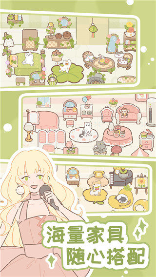 1、治愈系游戏画风,在这里你可以养超多可爱的小猫咪,打造你的专属猫舍吧。