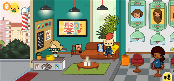 2、首页为玩家建造了很多游戏场景,比如家里,理发店等等,玩家可以自由选择进入。