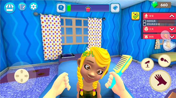 在这里,玩家主要通过扮演一名准妈妈来照顾宝宝的饮食起居,简单的操作按钮,开放式的游戏体验,游戏中你可以自由分配时间做你任何想要的事情,但前提是要照顾好宝宝哦。同时也要时刻关注家里大大小小的事情,比如客人来了,需要将蛋糕递给朋友,还需要打扫狗狗的床以及泡咖啡给丈夫,非常的忙,在这里可以体验到当妈妈的辛苦。除此之外在妈妈模拟器游戏中文版内,还需要完成不同的任务,这样可以获得相对应的报酬,然后可以给宝宝换上不同的衣服和造型,喜欢的玩家快来下载体验一下吧!