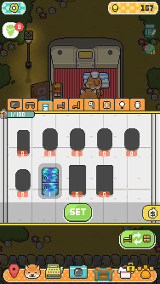 存钱,出摊,进军新地点!新的衣服、家具、动物种类会不断在新的版本中追加。