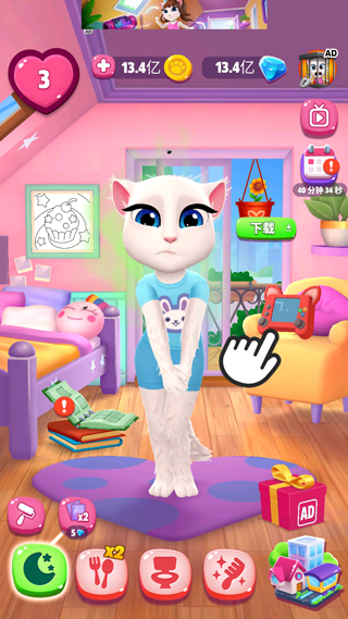 继《我的安吉拉》后,《我的安吉拉2》的玩法要更加的灵活,有趣。作为一款宠物养成系手游,虽然安吉拉一定程度上进行了拟人化,但还是保有着吃饭、洗澡、抚摸等功能。