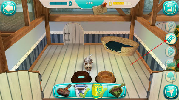 1、首先狗狗的训练需要从狗屋中点击右侧“导航条”,如图下图所示的“梯子”图形。