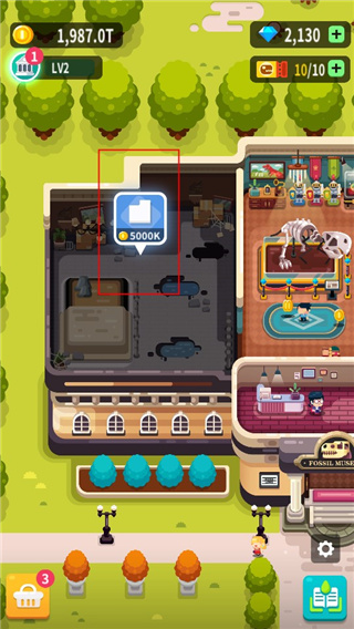 1、在本站下载安装并打开放置博物馆恐龙大亨游戏,进入游戏,玩家需要去挖掘各种恐龙化石来供游客们参观。
