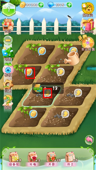 3、给植物浇水,点击金币即可获得金币,由于小编给大家带来的是花花姑娘之魔法花园破解版,所以玩家可以随意升级。