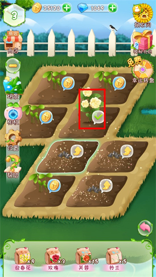 玩家可通过种植花卉,观看广告,完成任务等方式领取金币或钻石用于购买更加梦幻的场景!