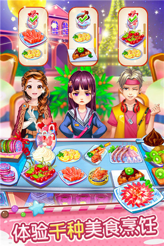 卡通写实的画风充分表达出美食的诱惑力。游戏中玩家扮演一名怀揣梦想的厨师,轻松驾驭多国菜肴。一边快速上菜,增长烹饪经验值,一边赚取金币和成就,扩张跨越全球的连锁餐厅帝国。