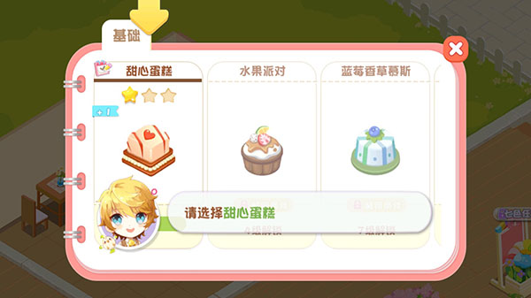 2、先点击烤箱上蛋糕,选择甜心蛋糕。