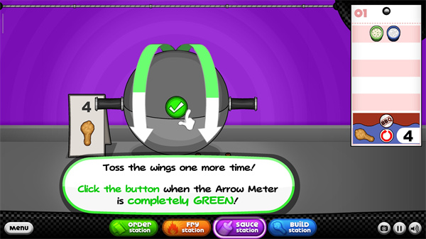 1、玩家需要根据客人的要求制作最美味的鸡翅。