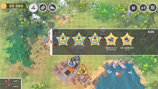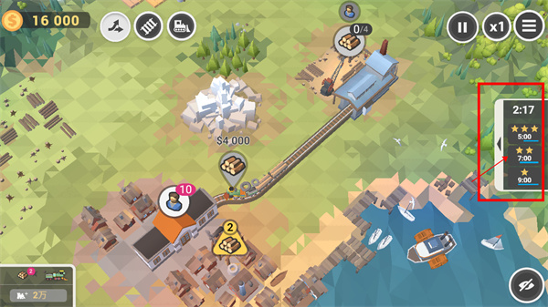 3、数十种著名的火车等你来解锁,收集不同的资源,并进行火车的升级,挑战更高难度关卡。