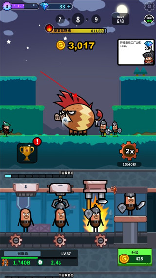 1、利用自己杀敌来赚取到的金币,你可以快速提升工厂当中的所有工具以及工厂面积2、并且在耗费一定的时间之下,是可以让你制作强悍无比的英雄登场,让你去进行使用的