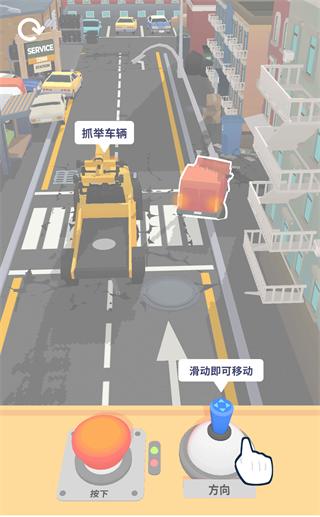 4、在游戏的过程中玩家将操作不同的车辆,每种车辆都有不同的操作方式,比如吊车需要滑动右侧摇杆控制吊杆移动方向,左侧则是松开夹子