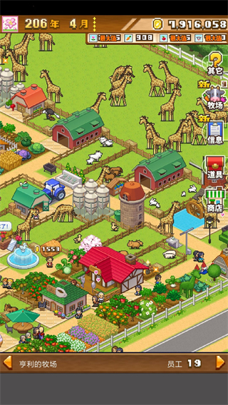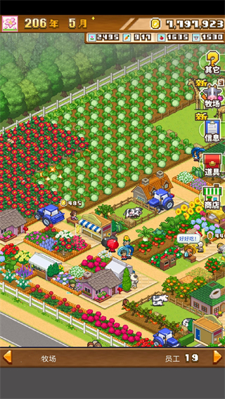 像素牧场物语中文正版是一款像素风格的牧场养成类游戏,是开罗游戏公司的又一次力作。在这款游戏中玩家将扮演一位牧场主,通过培育动物、蔬果、花卉等物品来赚取货币,最终将牧场与景区相结合来吸引顾客,打造一个多元化的牧场产业。该游戏画面Q萌可爱,色彩清新亮丽,在这里你可以种植瓜果蔬菜,也可以养殖鸡马牛羊,并且通过合理的规划布局,还能作为人们参观的景点,并以此来获取相应的奖励。为了提升牧场的人气和魅力值,玩家还需要不断地扩大牧场规模,同时还要提升动物、农作物的种养殖等级以及丰富动植物的种类,还要建立更加完善的公共措施,方便吸引更多的游客和朋友前来参观。据说如果表现出色,留下好成绩的话,不仅能得到奖金,还能获得时尚的装扮帽子!年末则会公布令人心跳的排名。争取在“营业额”、“顾客人数”、“满意度”、“人才”的各个项目中都拿到更高的名次吧。