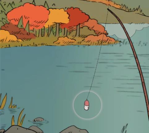 5、然后点击界面右上角的湖泊,在湖上我们可以看到一个钓鱼的鱼钩和浮标,点击它就可以开始钓鱼了。