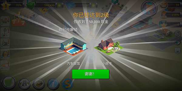 6、为了鼓励玩家建造发展,当我们完成系统任务或者升级的时候,都会有现金奖励,是对我们城市建设的一种鼓励哦。