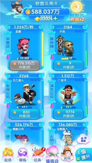2、解锁更多的角色来扩张你的神仙阵容,开办更多的公司来让效益获取速度更快