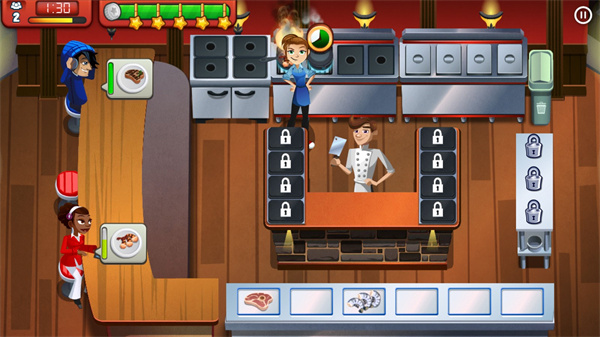 4、提高自己菜谱的质量,玩家在游戏中一定要控制好自己的操作来让自己的人物进行灵活的移动才行。控制好自己的菜谱来进行对客人的满足才行,这个还是比较重要的;