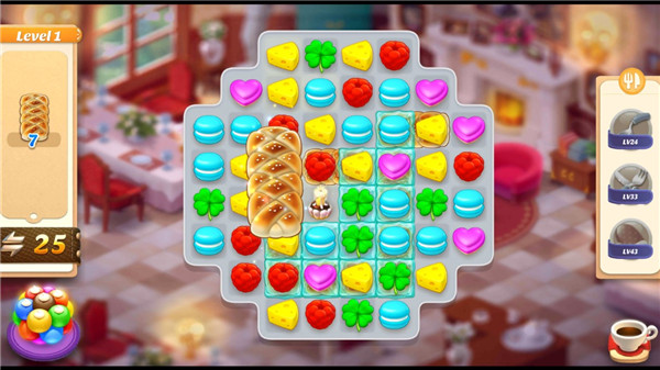 6、练习烹饪技巧和管理技巧。清除色彩缤纷的匹配3级,翻新和装饰餐厅。