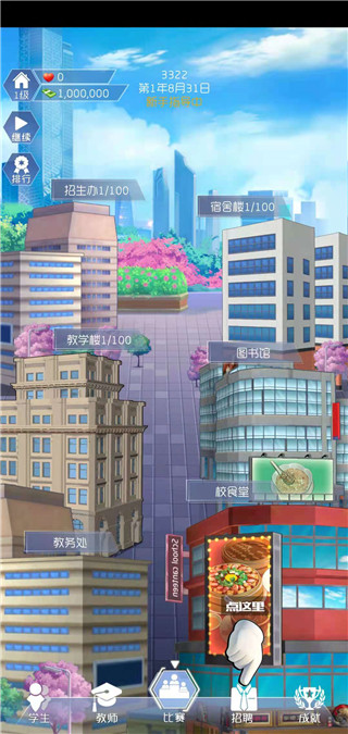 1、游戏当前最重要靠学校的声望,只有声望高才能扩招。2、需要去提升硬件和师资力量,只有这样才能够提升学校实力。