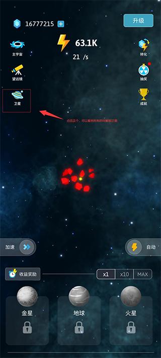 6、最后通过玩家不断地点击建造,解锁全部星系,创造一个属于自己的宇宙。
