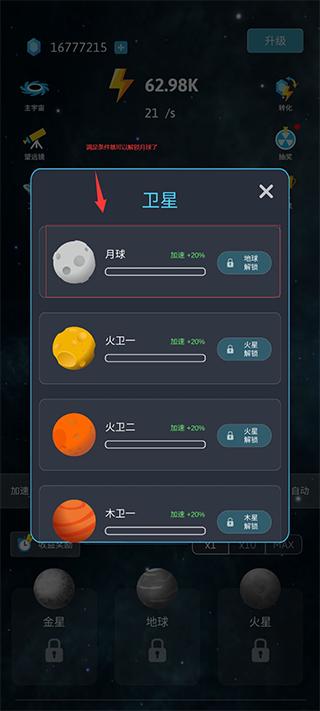 1、月球是地球的卫星,玩家要解锁月球的话首先需要解锁地球并且把地球创造出来;