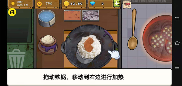 7、最后拖动铁锅进行加热就可以出锅啦;
